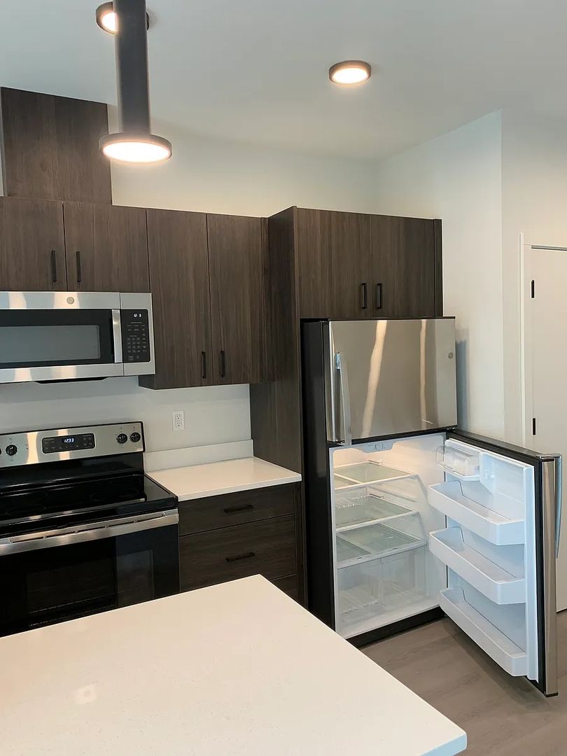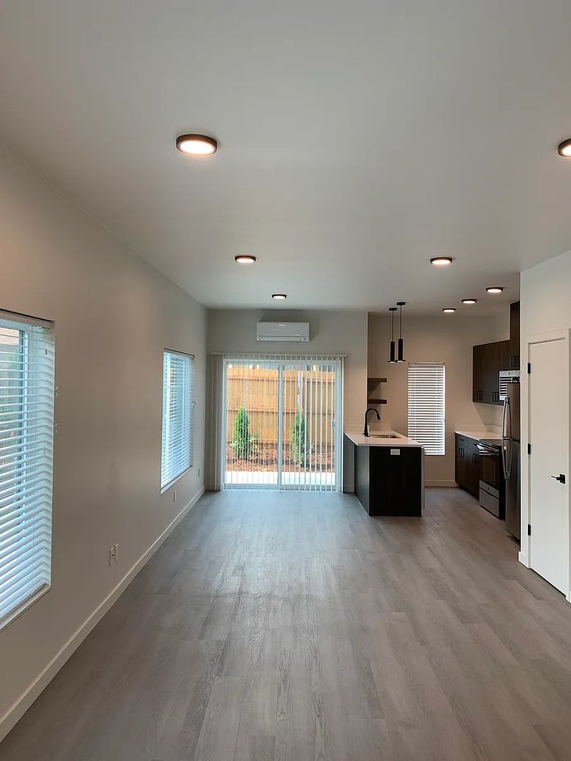 This 2-bedroom, 1.5-bathroom unit features high ceilings, stainless steel appliances, and luxury vinyl plank flooring. Enjoy the convenience of a dishwasher, built-in microwave, and stackable washer/dryer. The semi-private patio is perfect for relaxing outdoors. Stay comfortable year-round with ductless A/C and ceiling fans. This new construction also includes water, sewer, storm water, and garbage services. With a Jack and Jill bathroom, glass top range, and stone countertops, this unit has everything you need. Plus, your furry feline friend is welcome with a $300 additional deposit and $30/month pet rent. No smoking or vaping allowed on the property. Don't miss out on this opportunity to call this beautiful townhouse your new home!