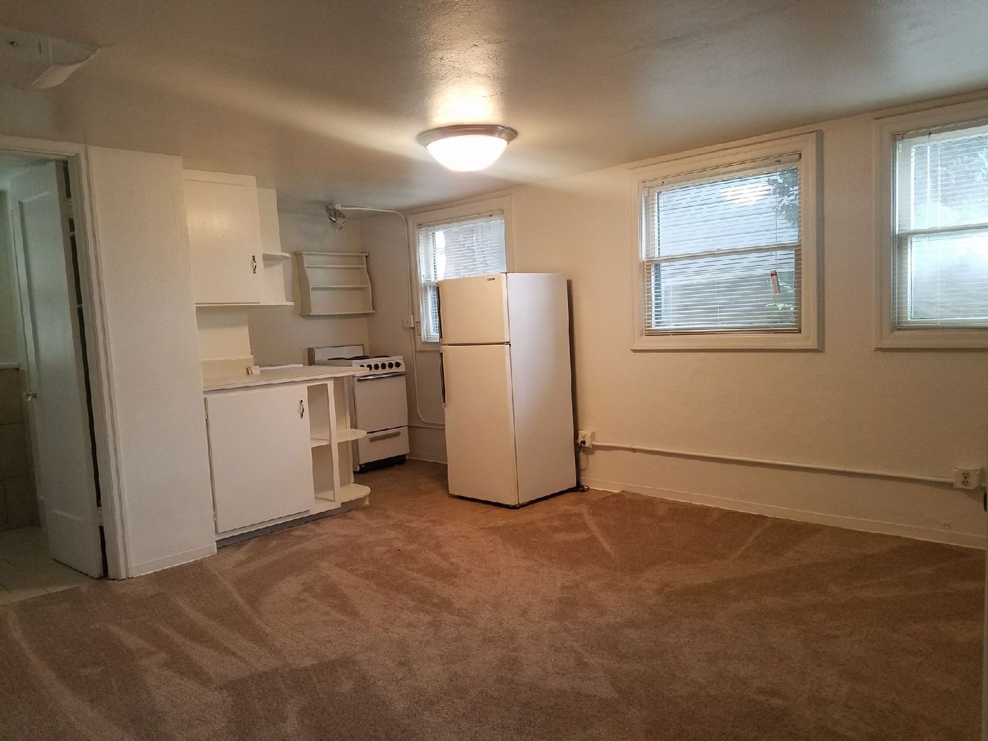 This unit boasts a full bathroom and a well-equipped kitchenette featuring a stove and refrigerator. The living space is adorned with comfortable carpeting and vinyl flooring, and the windows are fitted with blinds to provide privacy and control over natural light. The complex offers a common laundry facility, ensuring your laundry needs are met without the hassle of leaving the premises. Water, sewer, and garbage expenses are included in the rent, providing added convenience and value. Off-street parking is available, ensuring your vehicle is safely parked within the complex. For those in need of extra storage, we offer a rental option for just $50 per month. Experience the comfort and convenience of living in our studio apartment in this charming Eugene complex.