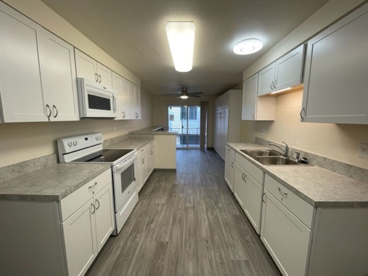 Newly updated quint on campus with private bedroom and bath! Newer flooring, counters, bathroom vanity, window covering, refrigerator, light fixtures, etc. Locking personal cupboards in large shared kitchen. On site laundry and free parking. Common area cleaning provided. Shared kitchen